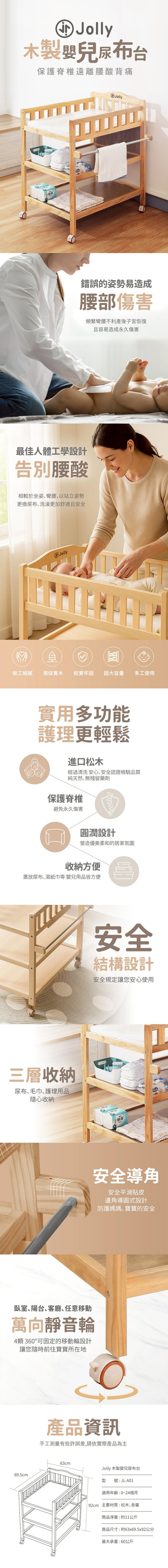 Jolly木製嬰兒尿布台