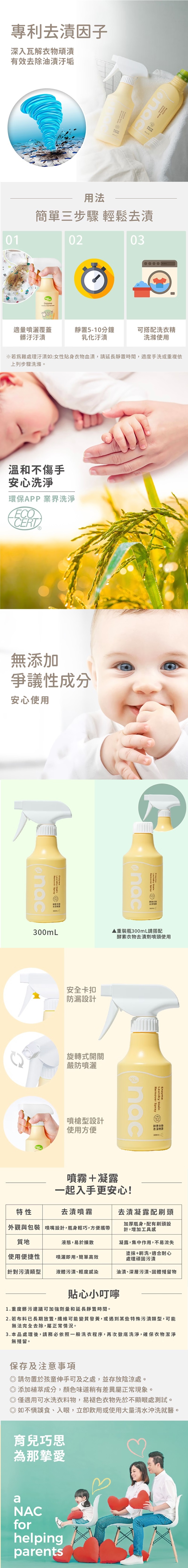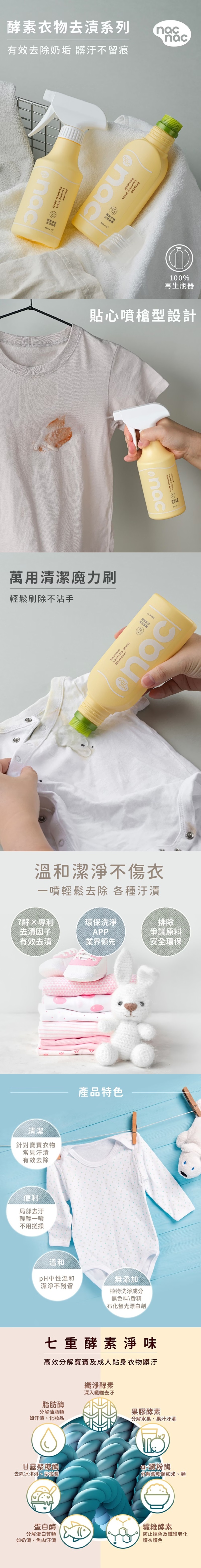 ◎七重酵素配方:結合專利去漬因子,有效去除奶垢、果汁、食物殘漬及尿便漬等多種汙漬。