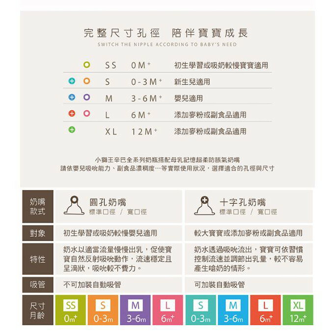 5.防脹氣奶嘴尺寸業界規格最齊全,8段流量分階餵養。