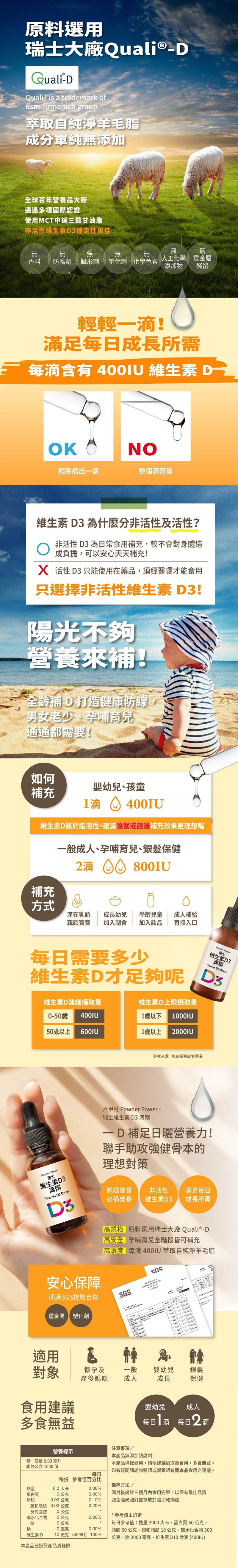 |非活性維生素D3|羊毛脂萃取每滴400IU|通過SGS檢驗|