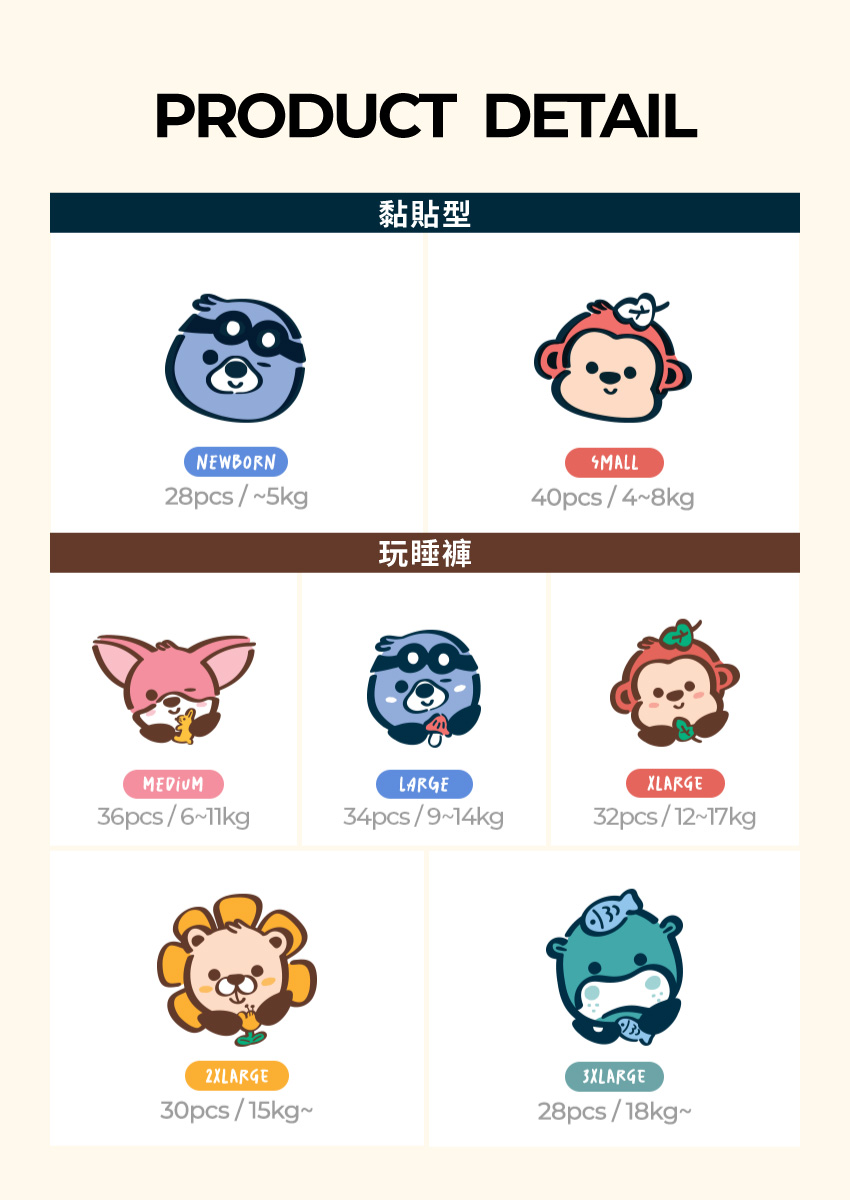 #國民超級水庫尿布 怪獸級吸收力 .超鎖水科技|吸收力高達1300ml 智慧鎖水,乾爽不回滲 .Air Through 芯層|鎖水直達地心 氣流循環設計,長時間依然清爽舒適 .雲柔貼膚系統|穿比不穿更舒服 輕盈柔軟如雲,寶寶活動無負擔 .六重防漏帶|鋼鐵級守護 從早到晚,穩穩接住每一次爆尿挑戰 尺寸注意! 黏貼型NB-適用新生兒(出生1個月內) 黏貼型S-適用4-5公斤 玩睡褲(褲型)版型正常:尺寸僅供參考,建議還是先購尿布體驗包試穿最準喔!